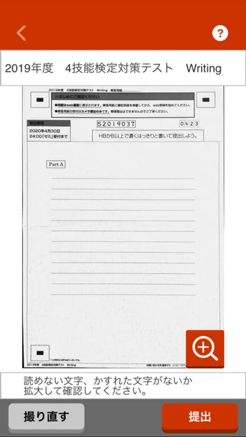 <4技能検定対策テスト Writing提出カメラ>アプリは、<4技能検定対策テスト>のWritingの解答用紙をiPhone、iPadで撮影し、提出することができる提出専用アプリです。