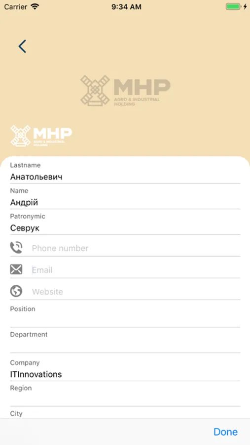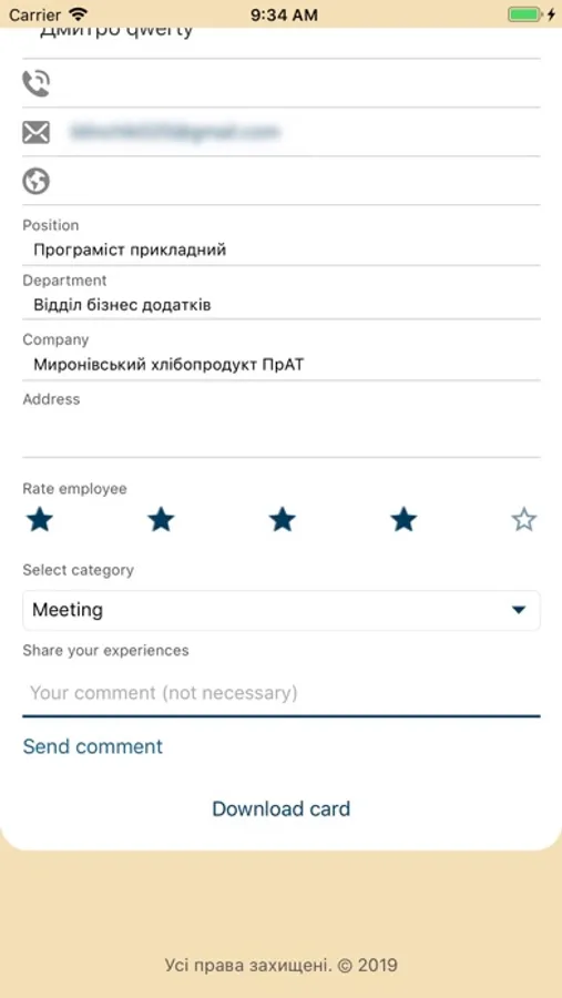MHP Assistant - мобільний додаток для формування візитної картки та надання зворотного зв'язку
