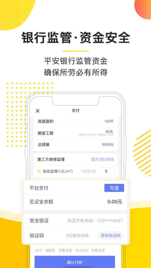 √ 资金安全:银行全程托管装修资金,为每一位辛苦劳作的师傅收入负责