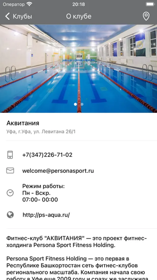 С помощью приложения вы можете следить за новостями, расписанием клубов, оперативно получать информацию об изменениях в расписании и специальных предложениях, приобретать карты и услуги.
