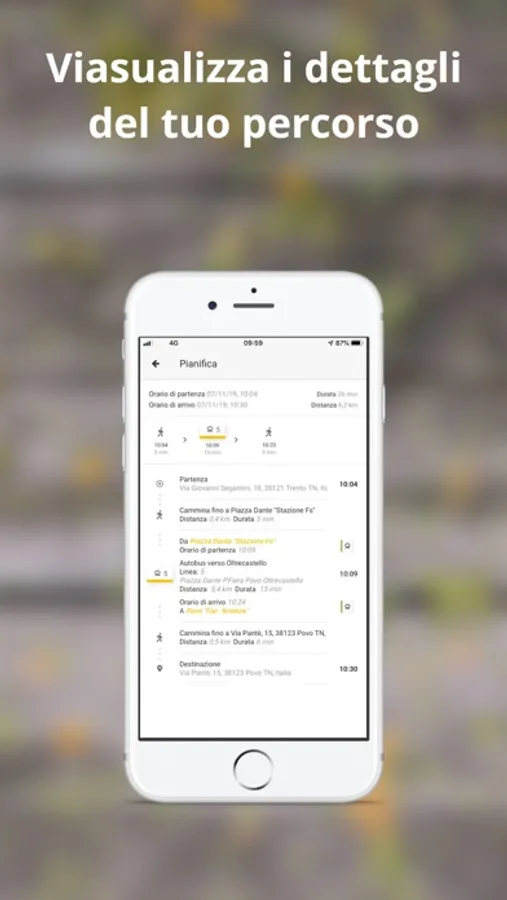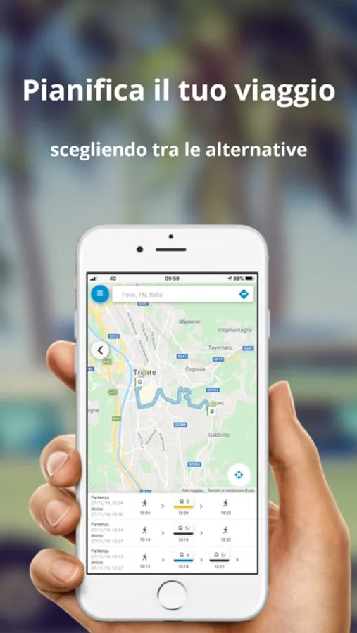 L'APP Muoversi in Trentino fornisce informazioni georeferenziate in tempo reale sui servizi di trasporto pubblico locale in provincia di Trento relativamente a corse/linee, orari, tempi di percorrenza, eventuali ritardi dei mezzi pubblici, funzioni di “trova percorso”, integrazione con i servizi di bike sharing con possibilità di selezionare delle corse/linee preferenziali.