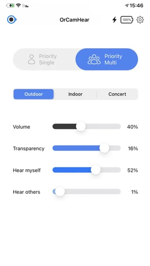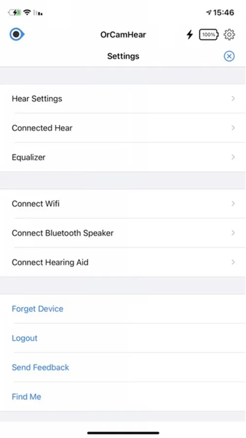 The OrCam Hear App supports the advanced settings and configurations of the device.