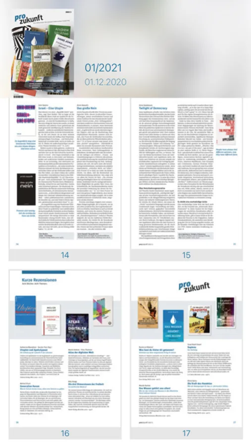 pro zukunft ist das Buchmagazin für zukunftsweisende Debatten. In Form von prägnanten Buchbesprechungen informiert das Magazin vierteljährlich über Neuveröffentlichungen aus dem Sachbuchbereich. Hol dir jetzt dein digitales Abo oder entdecke mit unserer App viele Open-Access-Buchvorstellungen, um immer auf dem Laufenden zu bleiben.