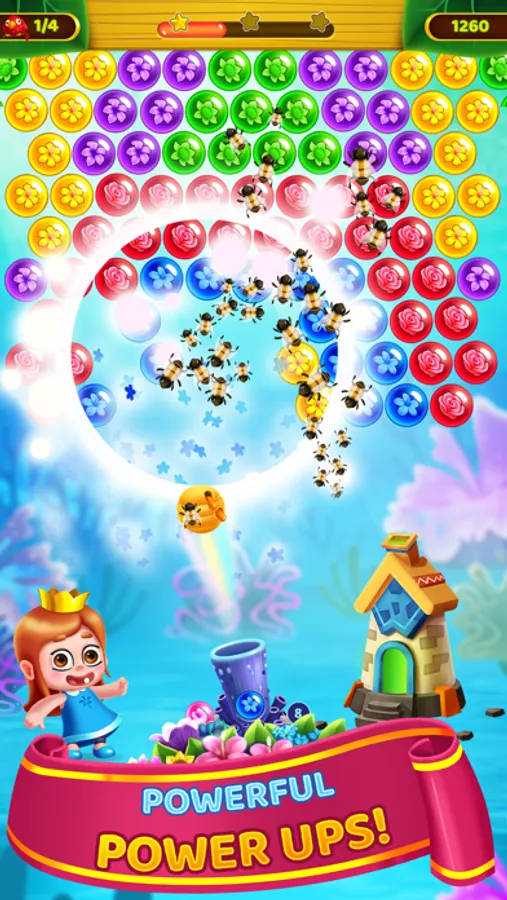The flower gods have called upon a chosen few warriors to retrieve flowers with super magical powers. The warriors of each world must defeat the evil that lies in their respective worlds and gain possession of the mythical flowers that lie in their captivity. Can you help the warriors in doing so? Travel exquisite locations in worlds - each different from the previous one and enjoy a magical adventure in the best bubble shooter experience.