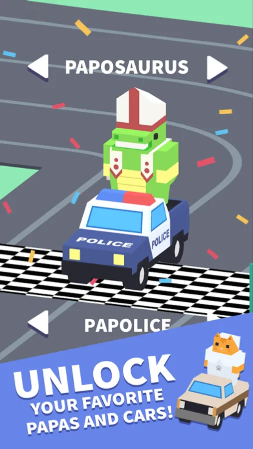 ⋆ Unlock colorful skins for drivers and vehicles and customize your favorite personal Papa!