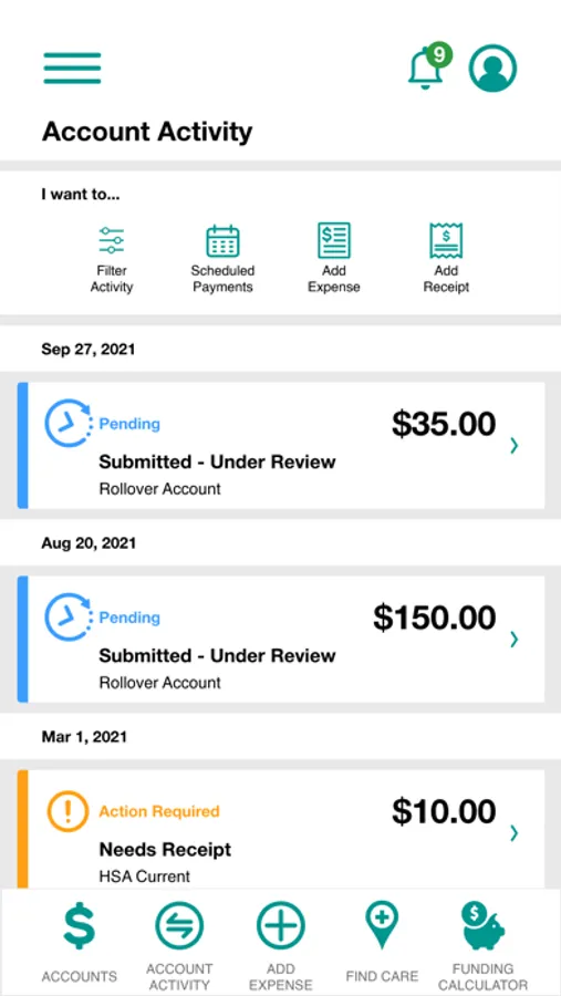 • Benefit Health Account balances and details