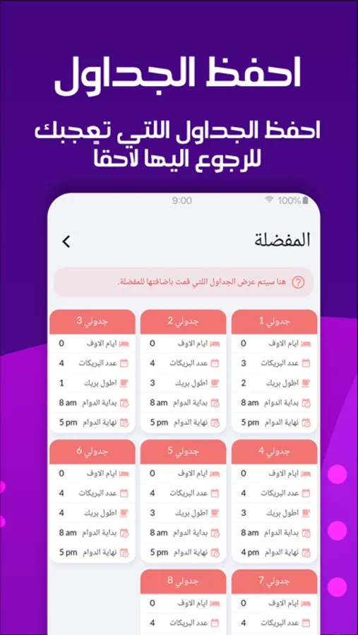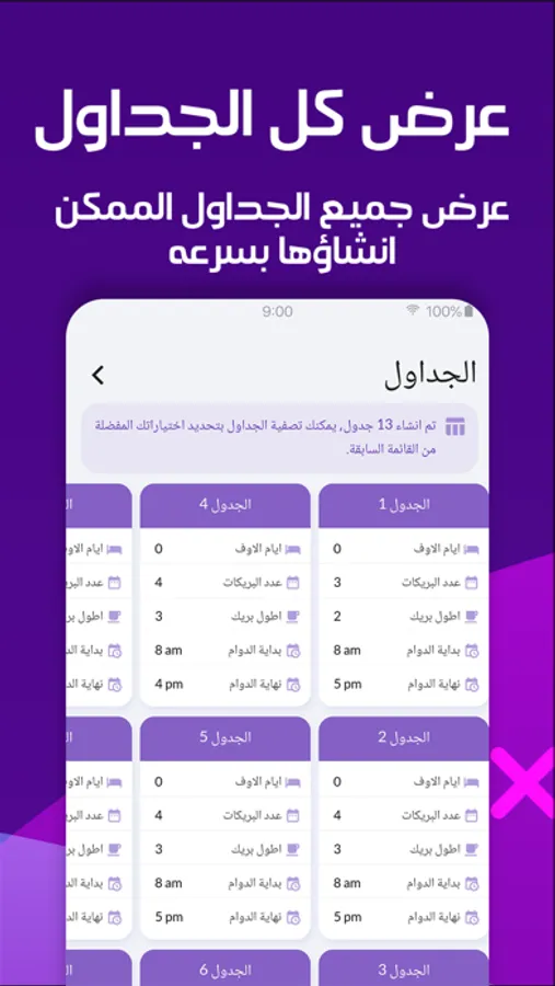 يمكنك الاختيار بين جداول معينه مثل ( اقصى عدد للبريكات في الجدول, الجداول التي تحتوي على يوم اوف, اطول يوم بعدد الساعات في الجدول, اطول مده مسموحه للبريك .. الخ ).