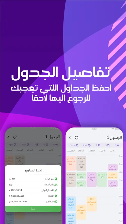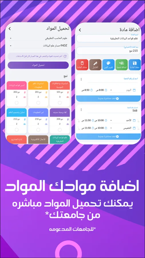 - انشاء الجداول الجامعية, ضع جميع موادك و جميع الشعب المتاحه ثم خطط واختر الجدول المناسب لك بسرعه.