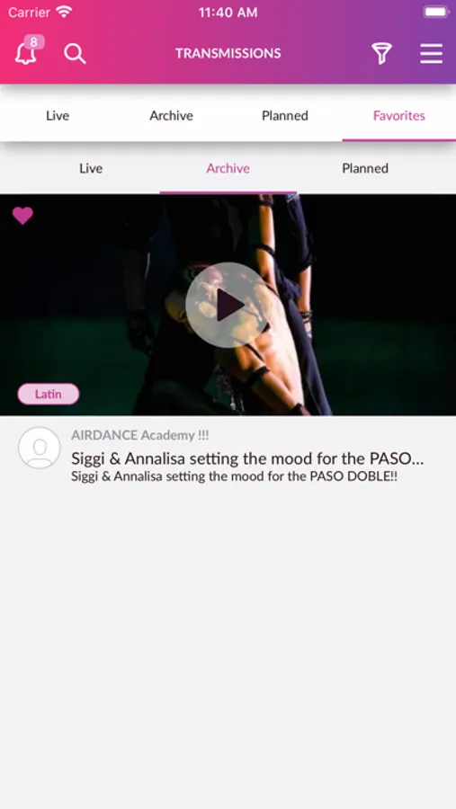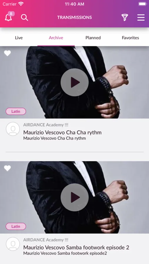 2. Instant access to live lessons (over 100 monthly) & big archive (over 800) of all Air Dance Live videos
