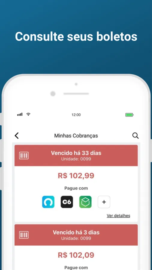 * Visualizar os boletos em aberto e liquidado de sua unidade;