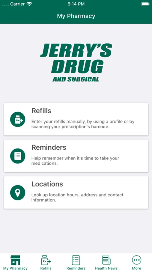 The Jerry's Drug & Surgical app allows you and your family to securely communicate with your local pharmacy. Refill your prescriptions with one click, get refill reminders, get discounts at your local pharmacy, get savings on brand drugs and access Pharmacist written pages that help you understand your condition or medications.