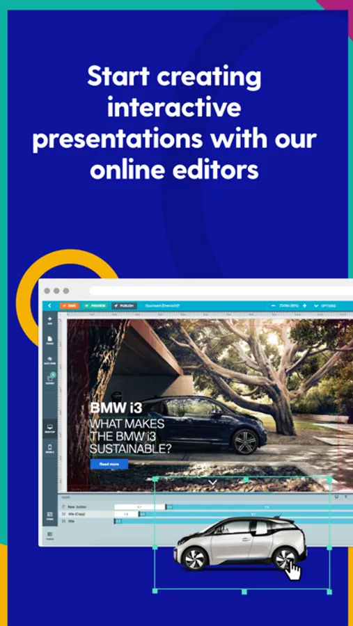 * Presentations with layering, animation, interactions, embedded content, custom navigation and offline video