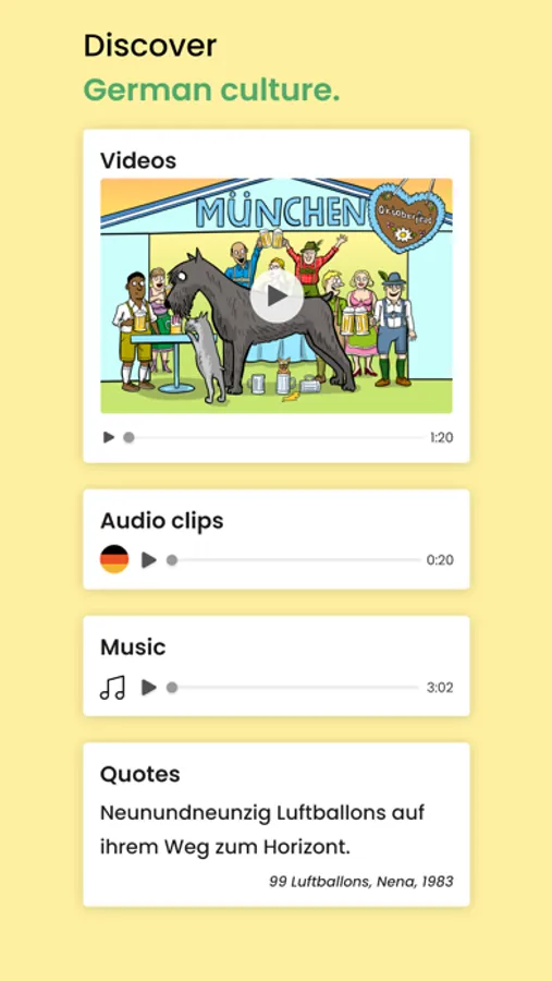 Culture and German language: Enjoy clips with iconic songs, film extracts, literature and more.