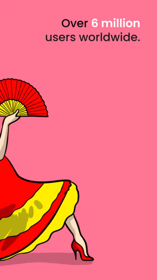 In this language learning app, users engage with short Spanish lessons that include dialogues, questions, and humor to improve language skills. Includes personalized feedback, diverse content like music and film clips, and review scheduling for long-term retention.