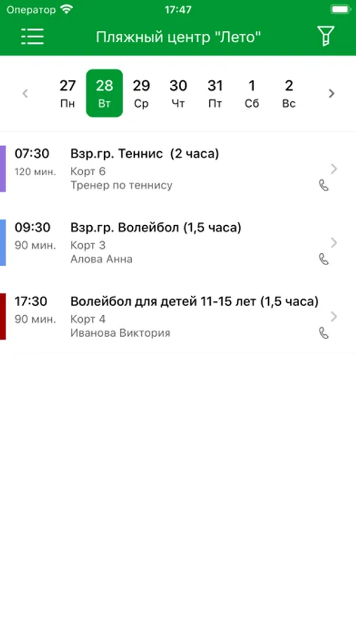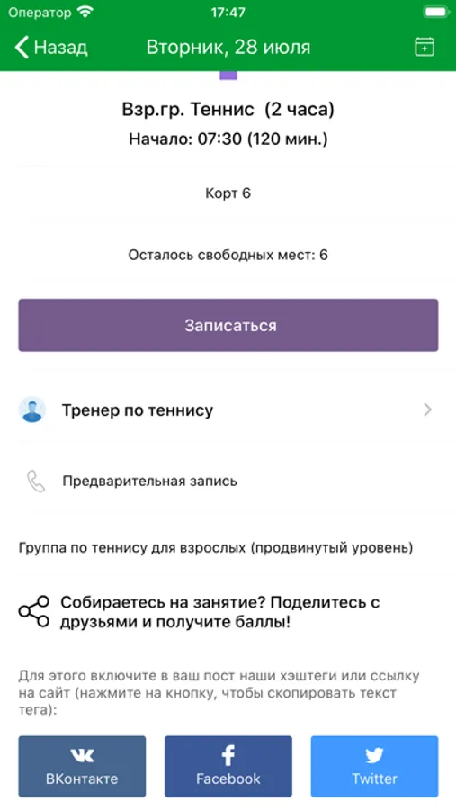 - получать оповещения о предстоящих тренировках и обо всех изменениях