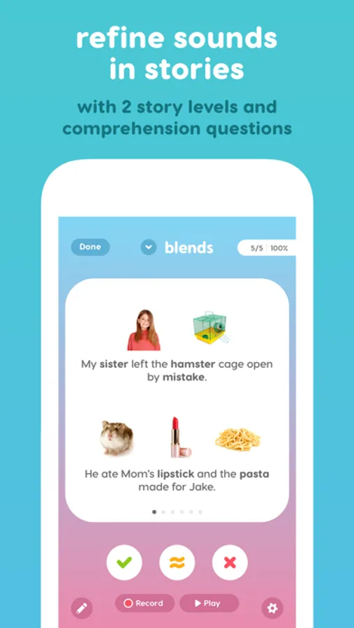 - Multiple sounds allow learners to practice multiple sounds at a time at the word, phrase, or sentence level.