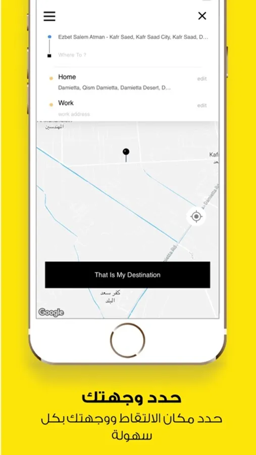 2– حدد مكان الالتقاط ووجهتك وسيتم تحديد افضل مسار ممكن.