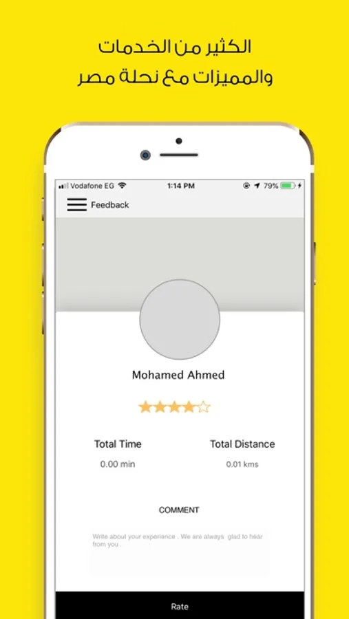 6– بعد انتهاء الرحلة يمكنك تقييم السائق والرحلة بالكامل.