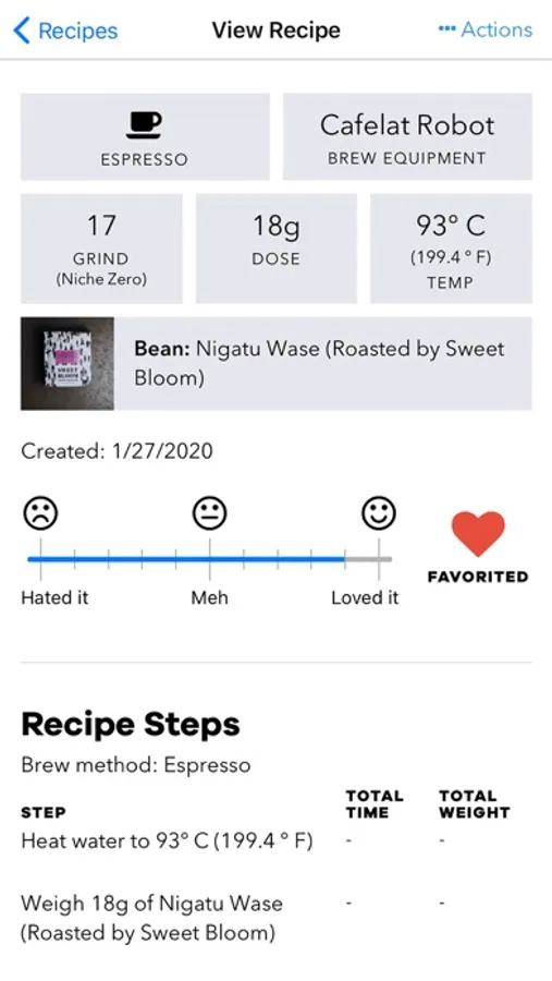 - Equipment -- Have multiple grinders or espresso machines? No problem; you can specify which one you used for each recipe.