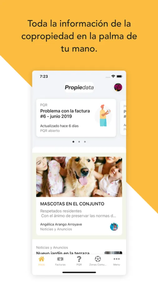 Con Propiedata tendrás en la palma de tu mano todo lo que necesitas en tu copropiedad. Podrás pagar tu administración, enterarte de noticias y eventos, publicar anuncios, reservar zonas comunes, autorizar el ingreso de visitantes, hacer solicitudes directamente al administrador, participar en votaciones y tener acceso a los documentos publicados por la administración.