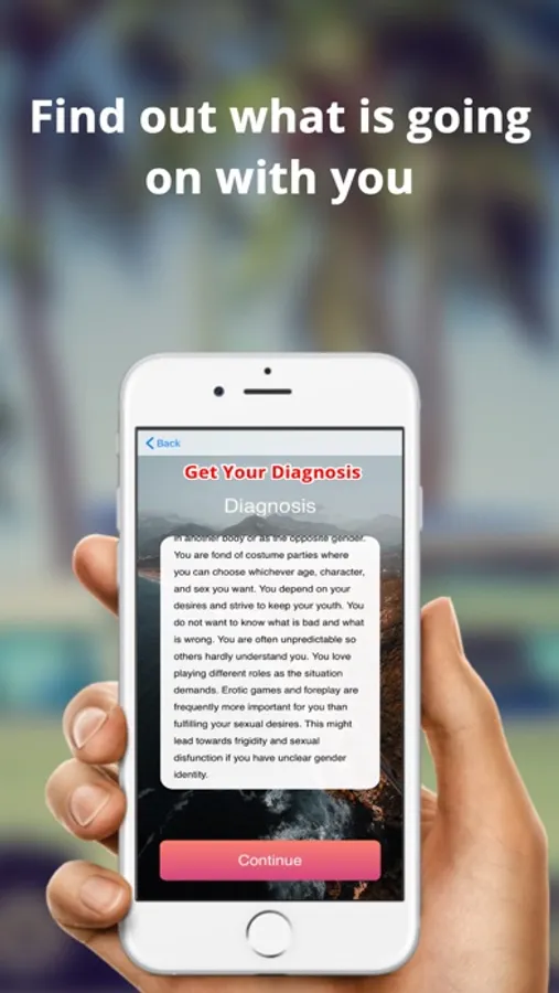 Choose your subject. Take a psychological quiz and receive one out of three diagnoses and recommendations.