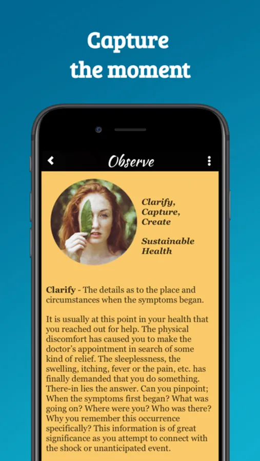 Along with an index of body conditions the user is encouraged to make note of their own symptom and how to understand them. By using this educational tool the user naturally adapts the 5 W’s - What, Where, Why, Who and When as indicated in the app name W5Wellness . . . just ask WHY?