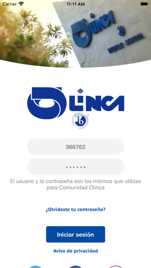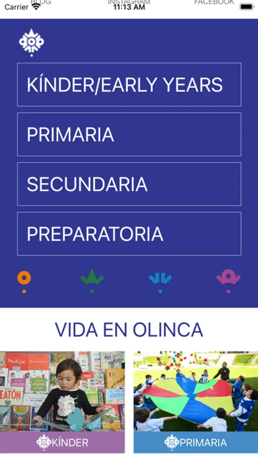 Aplicación escolar del Colegio Olinca, para recibir información sobre pagos, calendarios, circulares, avisos, transportes, revistas e información general.