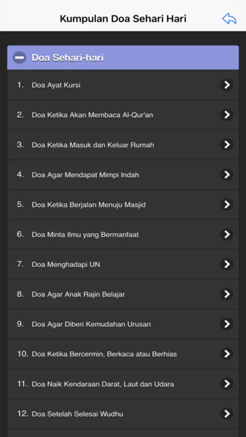 Aplikasi Kumpulan Doa Sehari-Hari Lengkap dalam Teks Bahasa Arab, Latin & Terjemahan Indonesianya. Berisi ratusan doa-doa harian paling mustajab yang diambil dari Al-Quran dan Hadits Nabi SAW. Bermanfaat untuk dibaca, dihafal, serta diamalkan dalam kehidupan sehari hari. Aplikasi sepenuhnya offline dan tidak membutuhkan koneksi internet sama sekali untuk menjalankannya.