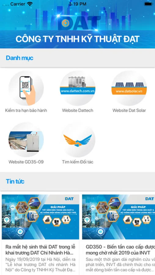 Ứng dụng của công ty Kỹ thuật Đạt giúp bạn tra cứu hạn bảo hành sản phẩm và nhiều tính năng khác sẽ được thêm vào trong thời gian sớm.
