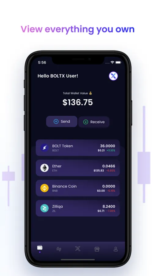 BoltX is more than just a crypto wallet – it is a secure, fun, and easy way to get started with the world of crypto. You can use BoltX to send, receive, and store Bitcoin and many other cryptocurrencies including Ethereum and NFTs.