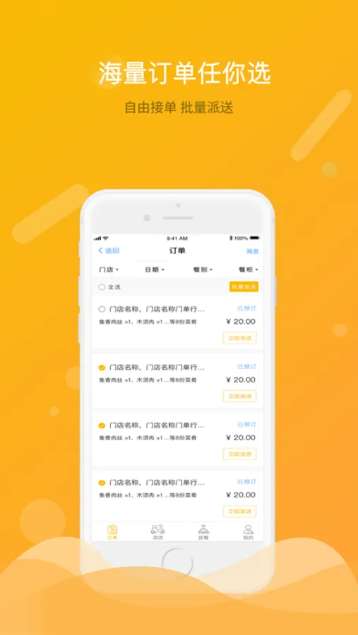 满客宝骑手是满客宝专为配送员量身定制的配送APP,以帮助配送员更好、更快的为满客宝客户提供配送服务为目的,骑手可以在平台上自动接收配送订单,管理订单、查看统计数据等。通过骑手APP快速派单,为客户提供轻松、愉快的就餐体验;