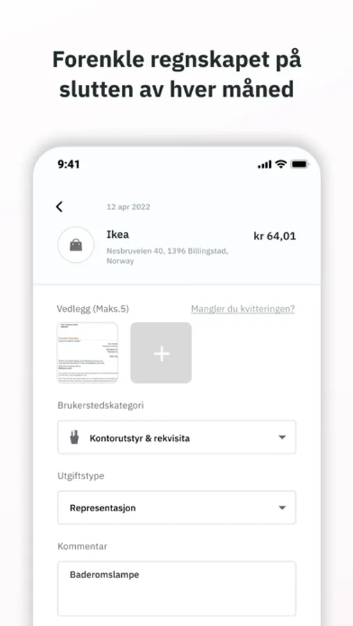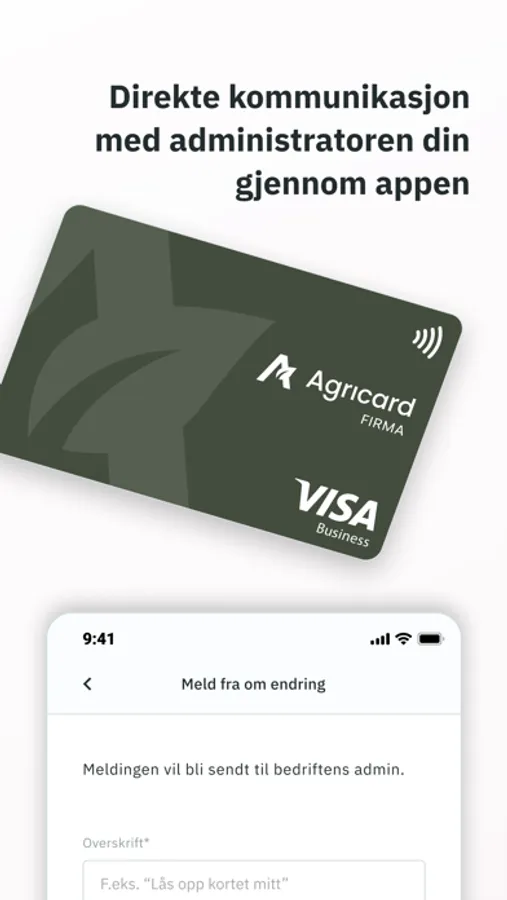 Agricard Firma app gir deg enkel tilgang til ditt kortbruk, og lar deg sende inn kvittering for bruk til din administrator – inkludert tilleggsinformasjon som reisemål, deltagere på bespisning, etc.
