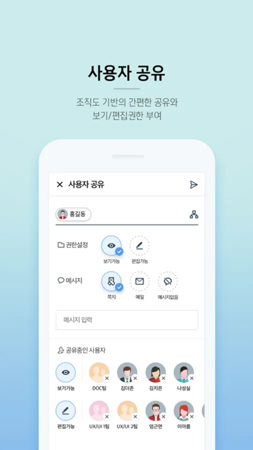 - 원피스 커넥트로 조직 구성원에게 문서를 쉽게 공유하고, 읽기/편집 권한을 부여할 수 있습니다.