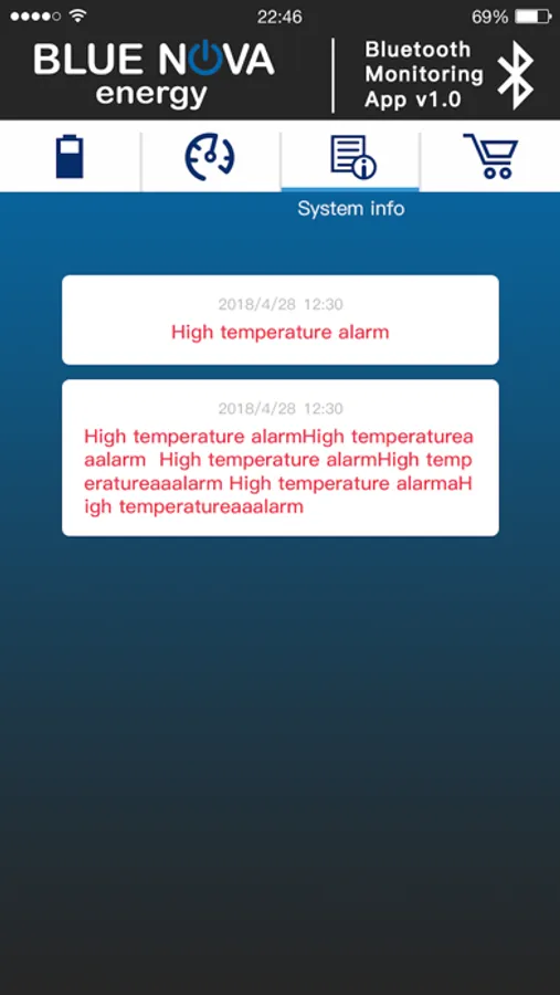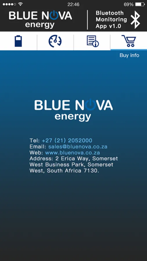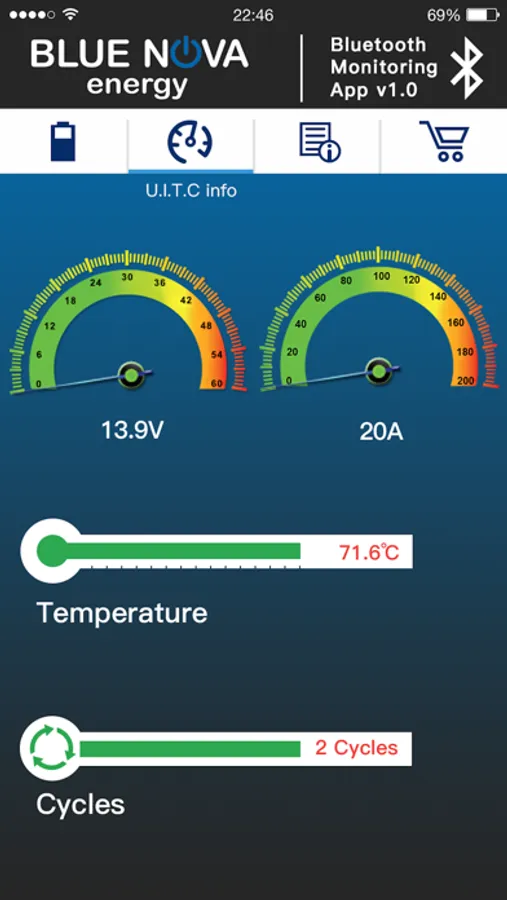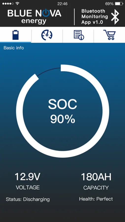 BlueNova Energy’s Bluetooth Monitoring App is an application that has been specifically designed to connect to Blue Nova energy Lithium Iron Phosphate (LiFePO4) batteries from the Blue Nova energy’s Mobile Power Series product range via Bluetooth. Performance variables that can be monitored include battery state-of-charge, voltage, current in/out and temperature, among others.