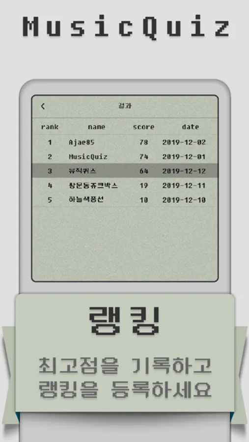 다양한 노래의 앞 부분을 듣고 노래 제목과 가수를 맞히고 최고점에 도전해보세요.