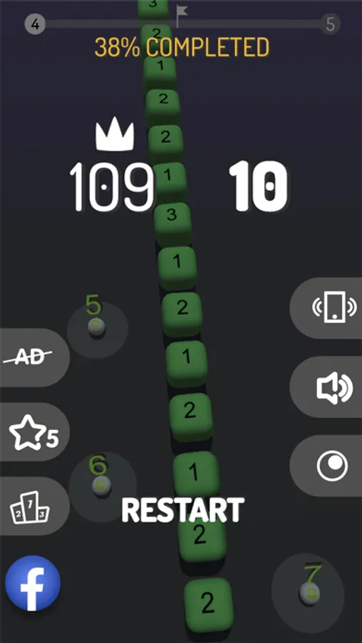 * Swipe your finger on the screen to move snake of balls and break the bricks