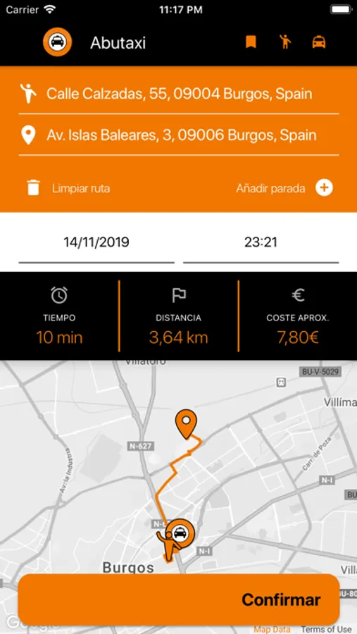 1 - Abutaxi localiza automáticamente la dirección desde la que solicitas el taxi (aunque también puedes cambiarlo de manera manual).