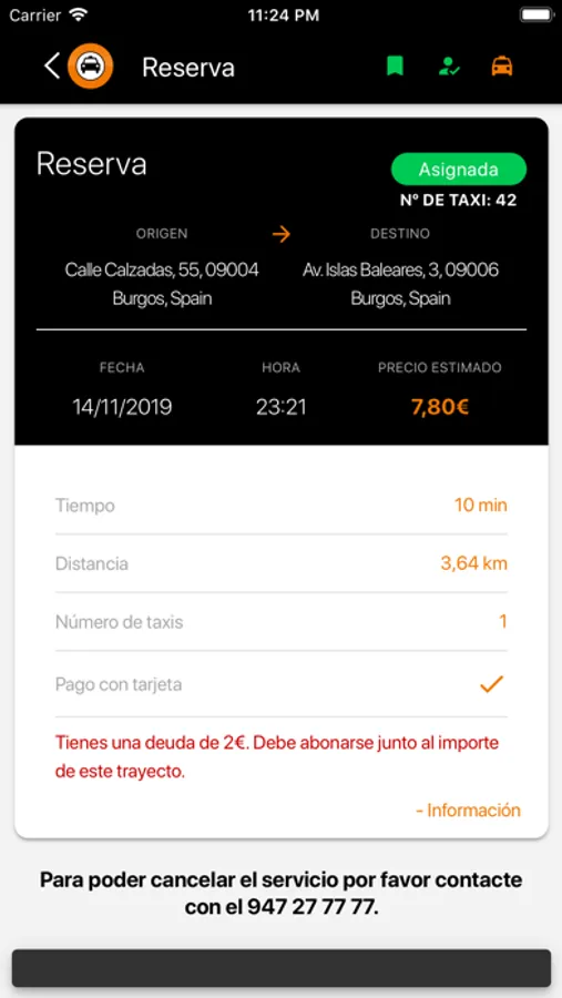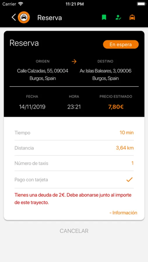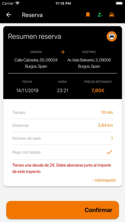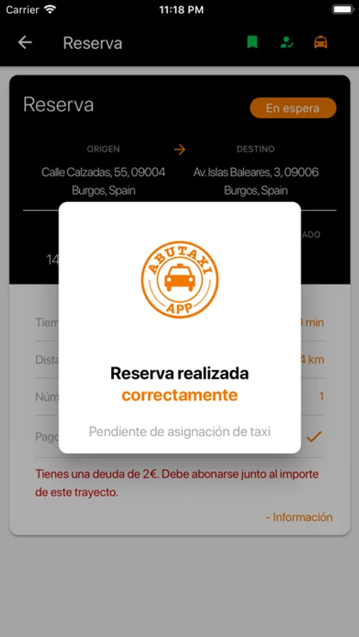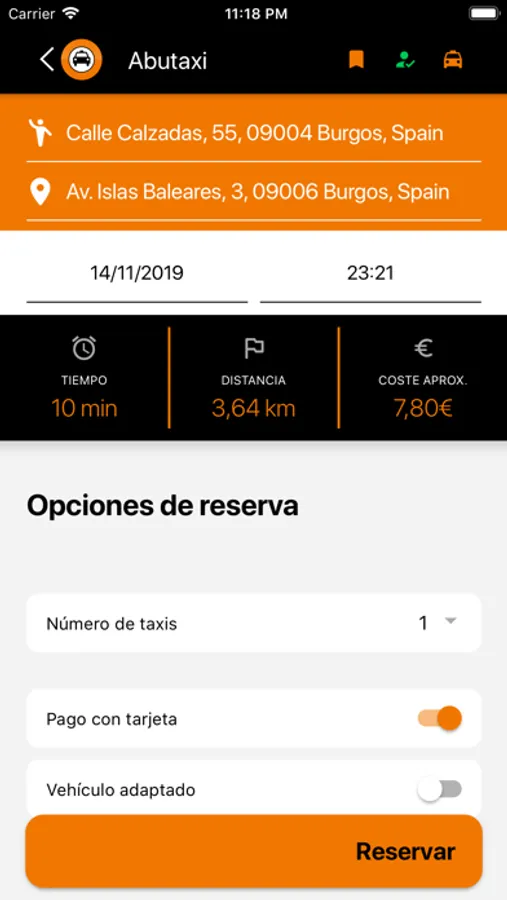 4 - Selecciona las opciones, reserva y... el taxi va a tu encuentro.