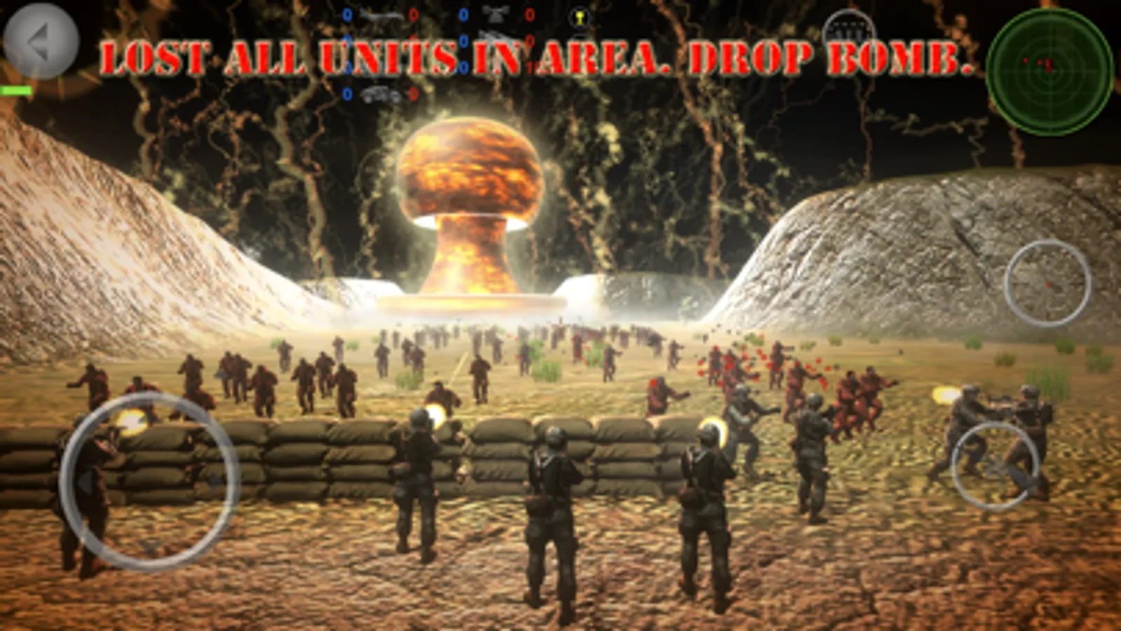 In other missions the enemy has the bomb, move your army to minimize the damage of a nuclear attack.