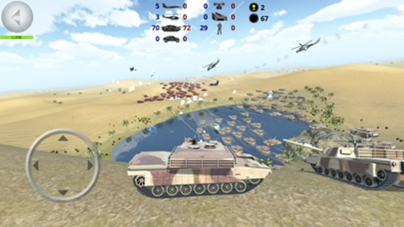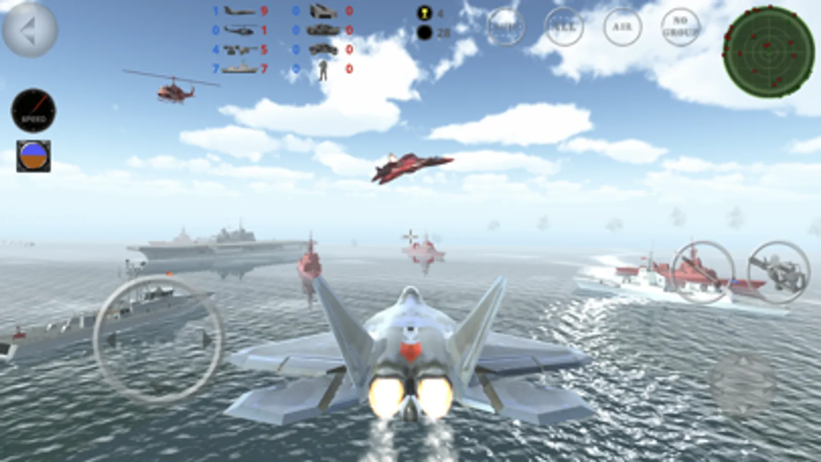 -Aerial battles between aircrafts, helicopters and anti-aircraft.