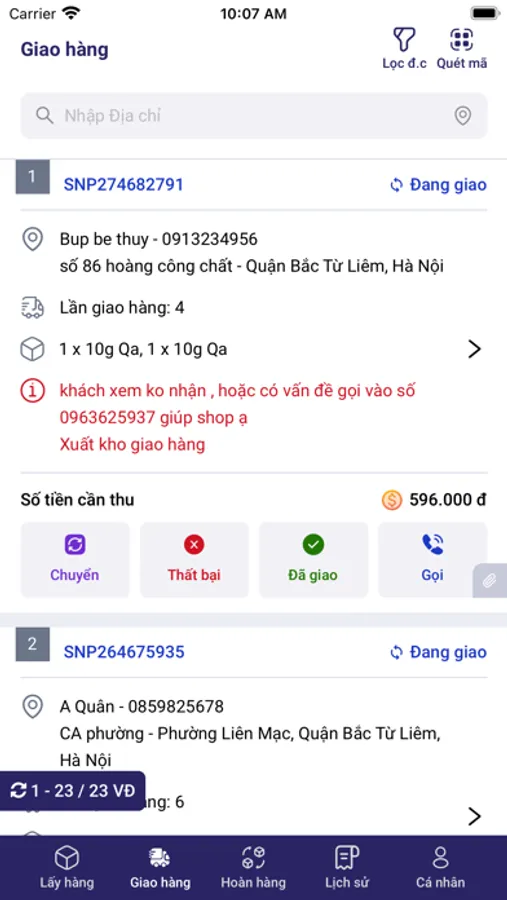 Ứng dụng quản lý nhân viên giao hàng hệ thống Snappy Express