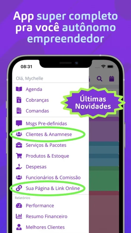 Suas funcionalidades de destaque são agenda eletrônica, integração com WhatsApp para acessar clientes e enviar mensagens, relatórios financeiros e de performance. Podemos dizer que ele funciona como uma secretária e um consultor administrativo.