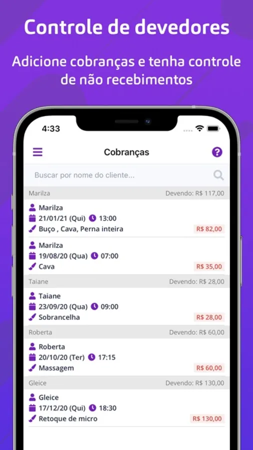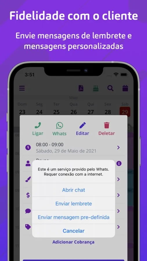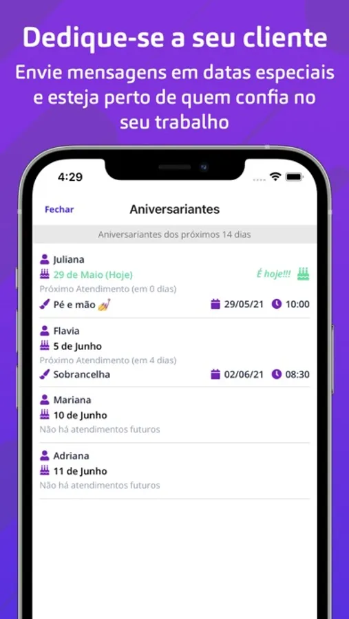 Envie lembretes, mensagens de confirmação de horário, ou customizadas como de aniversário para cativar e aumentar a fidelidade com o cliente.
