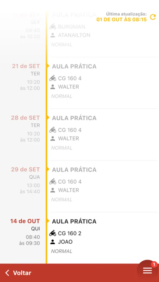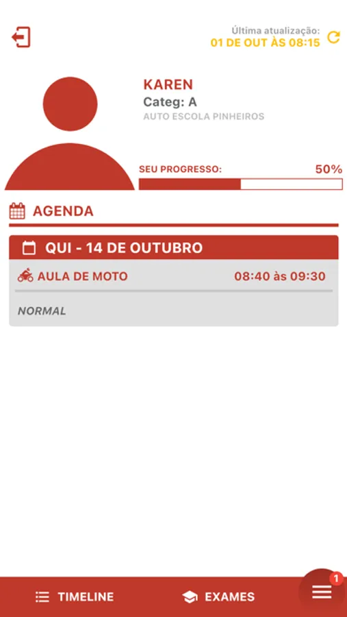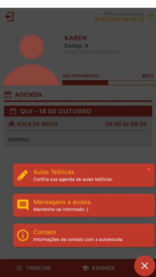 O aluno será avisado em tempo real os resultados dos exames prático e teórico.