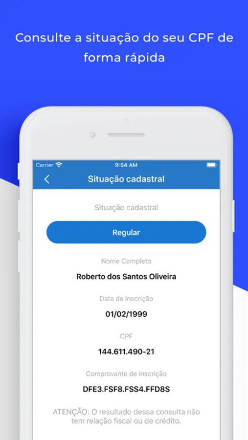 Vale ressaltar que não temos nenhum vínculo com a Receita Federal do Brasil. O aplicativo foi desenvolvido por iniciativa própria, pensando em democratizar e tornar mais prático o acesso às informações do CPF.