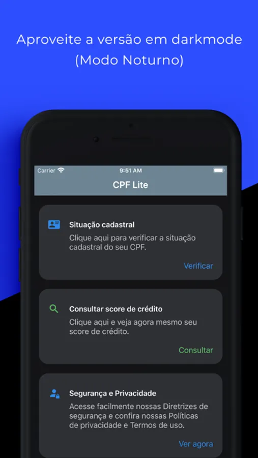 O aplicativo Consulta CPF foi desenvolvido para ajudar na consulta da situação cadastral do seu CPF e também é possível entender a melhor forma de como limpar seu nome.