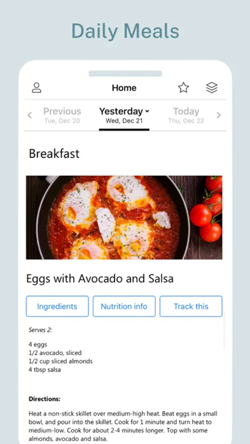* Meal by meal and daily nutritional summary with calories and macronutrients