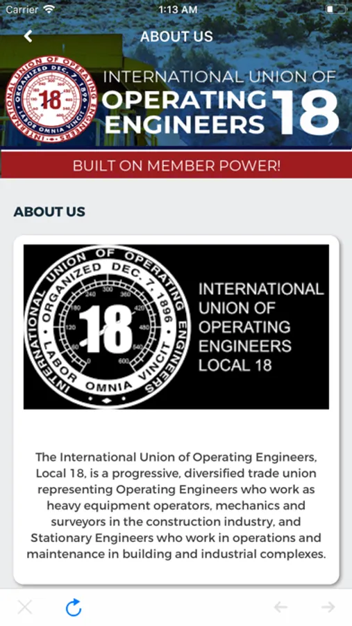 The IUOE 18 mobile app is designed for our Members. This app is to be used as a tool to better understand the benefits available to our Members.
