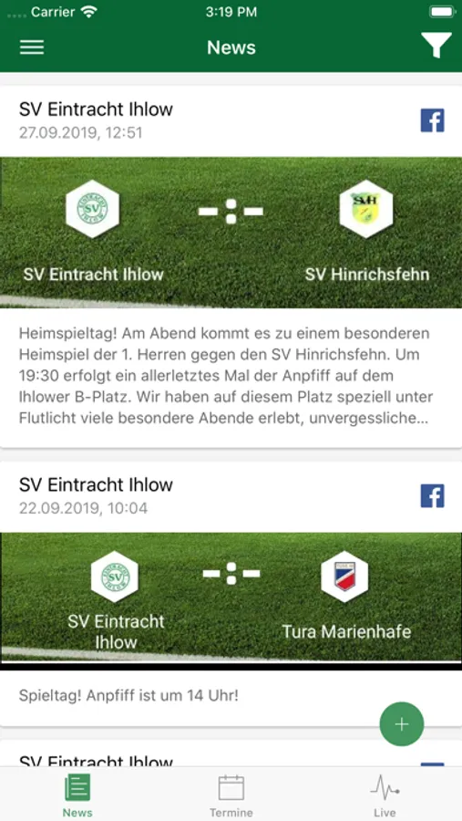 Durch die Einbindung sozialer Netzwerke kannst du das Geschehen im Verein brandaktuell mitverfolgen.