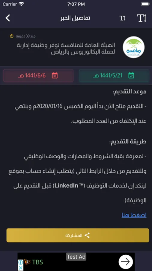 4- مشاركة الخبر مع الباحثين عن العمل.